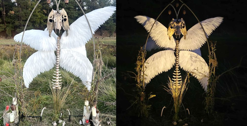 To drive customers to the market, Vice President Tina Butora created a scarecrow for Show Low’s Scarecrow contest. Entry #9, titled Seraph of Bone and Ash, made its debut on a cold and windy night, leaving Tina wondering if her seraph’s wings would carry it away. Her spine-tingling (ha, ha), skull-warping creation also invited viewers to join the Halloween celebration.